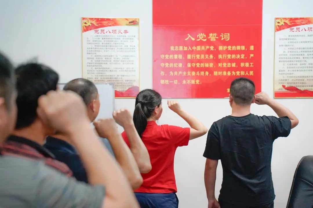 在入黨介紹人陳明同志的領(lǐng)誓下,李海燕同志及全體黨員宣讀了入黨誓詞。參會同志們?nèi)w站立,表情嚴(yán)肅眼神堅定,懷著為共產(chǎn)主義事業(yè)奮斗終身的信念,舉起右手莊嚴(yán)宣誓,錚錚誓言在大家耳邊縈繞,紅色種子在新黨員的心中悄悄埋下靜待發(fā)芽,黨的精神薪火相傳,生生不息。